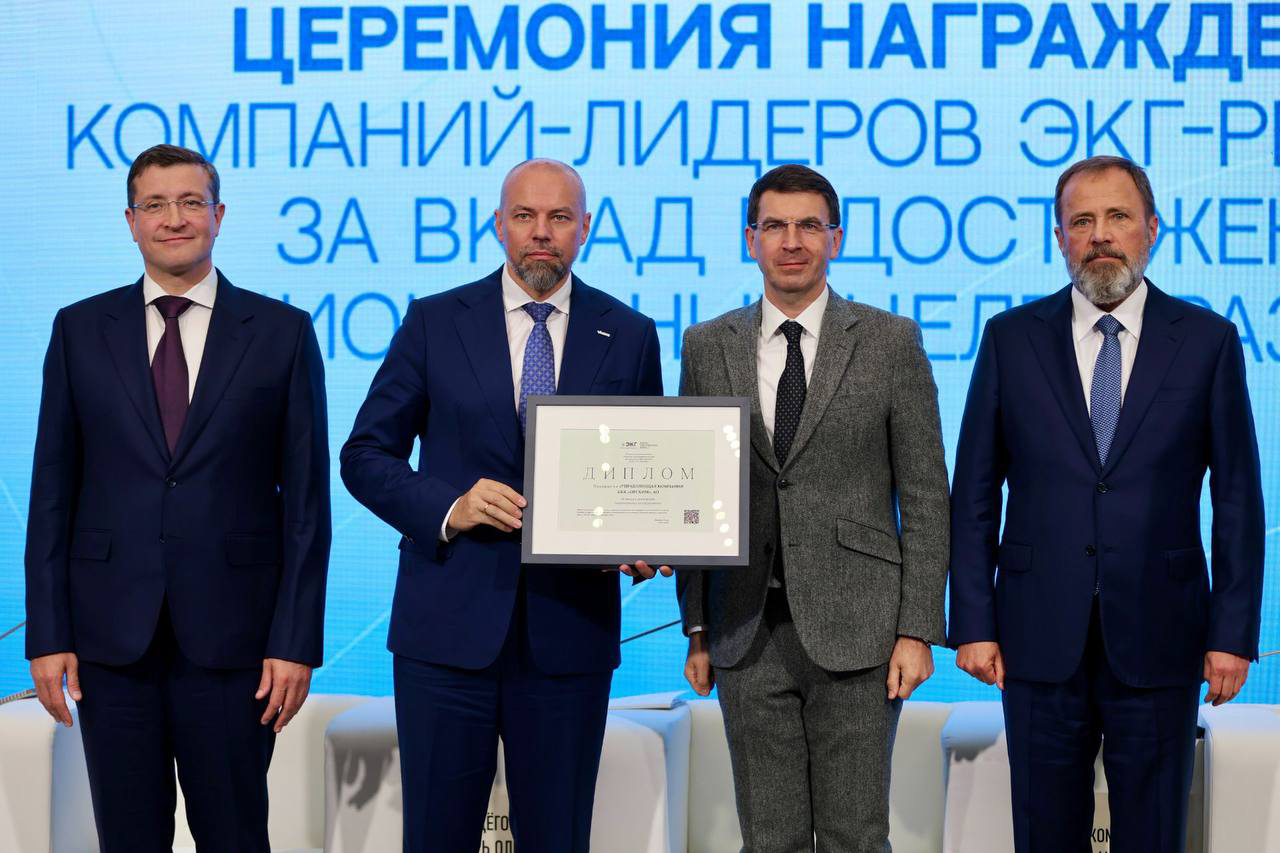 Пленарная сессия завершилась церемонией награждения «За вклад в достижение национальных целей развития». Лидером ЭКГ-рейтинга среди всех компаний Нижегородской области было признано предприятие Оргхим, на текущий момент у компании 118 баллов из 160 возможных, и 24-е место в России (при общем количестве участников рейтинга свыше 7 млн.), что подтверждает отличный результат работы всей команды в таких вопросах как кадровая и социальная политика, экологическая безопасность, эффективность технологий производства, благотворительная деятельность.